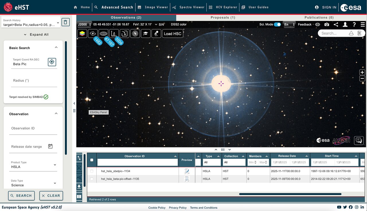 We are pleased to announce the release of a new version of eHST, which now includes science products from the Hubble Spectroscopic Legacy Archive (HSLA), that were released by STScI in November 2025. In brief, the HSLA provides co-added spectra of each individual target observed by Hubble’s Cosmic Origins Spectrograph (COS) and Space Telescope Imaging Spectrograph (STIS). To maximise the signal-to-noise and wavelength coverage for each target, the HSLA automatically combines data from multiple observing programmes, instruments and gratings, as well as classifying targets to enable searches on the basis of object classification.