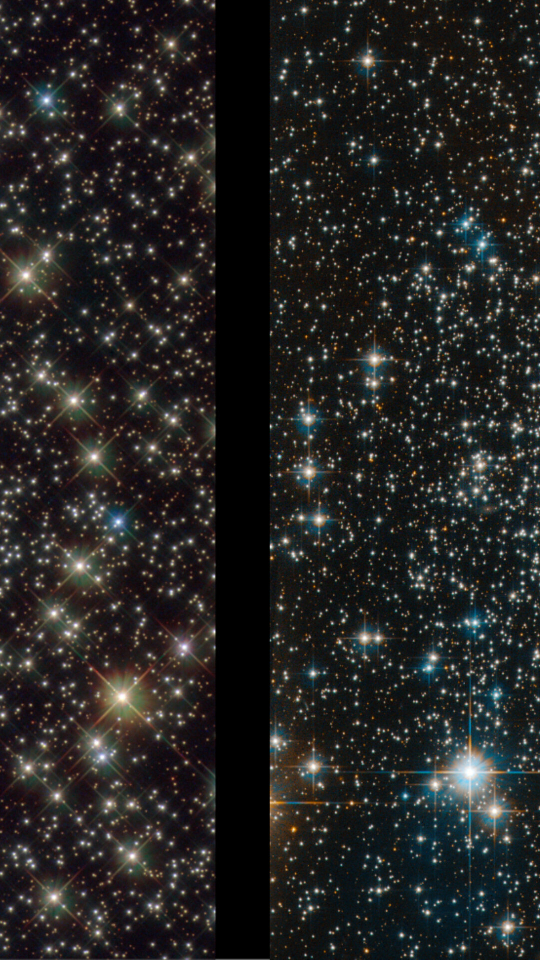 This image features two globular clusters from a recent Hubble study that provides some of the clearest evidence yet that blue stragglers owe their youthful appearance not to collisions, but to life in close stellar partnerships, and to the environments that allow those partnerships to survive.