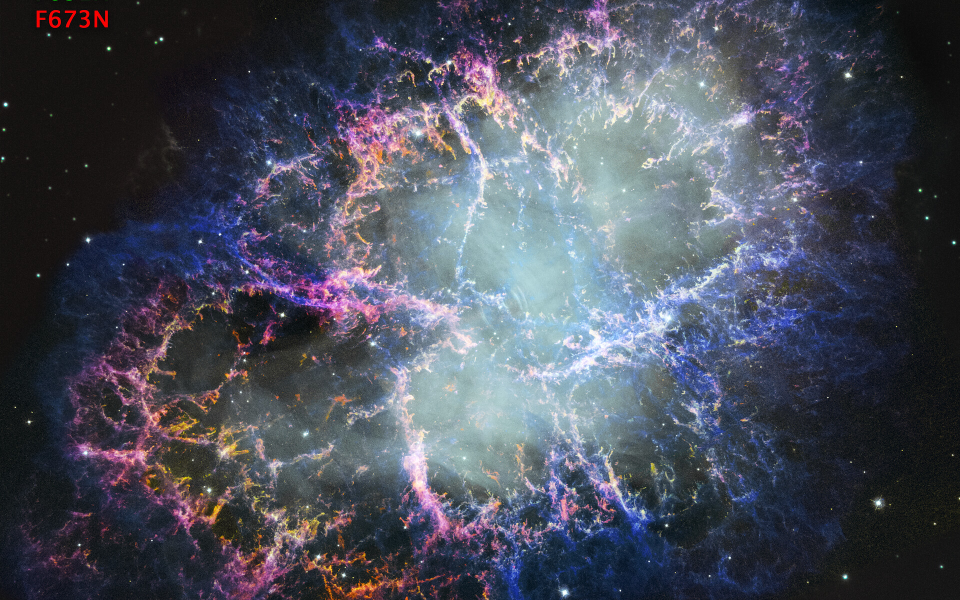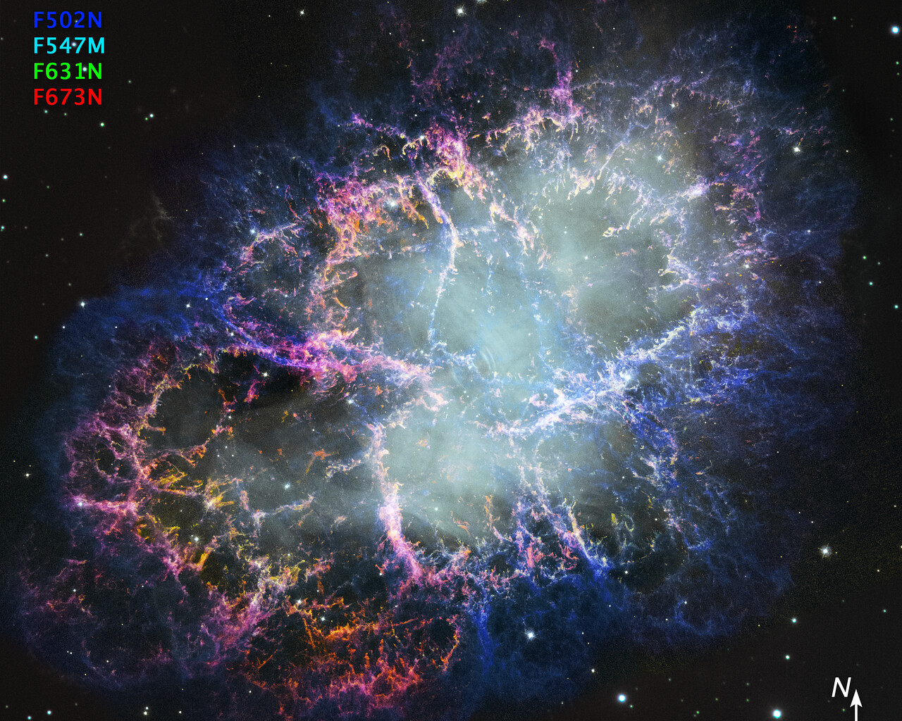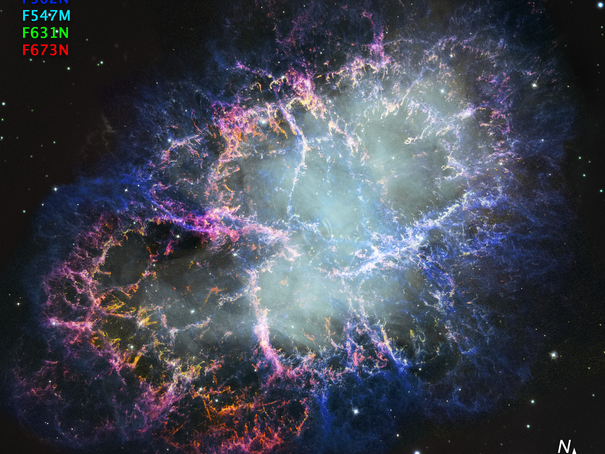 Crab Nebula (new image from 1999/2000 data, annotated)