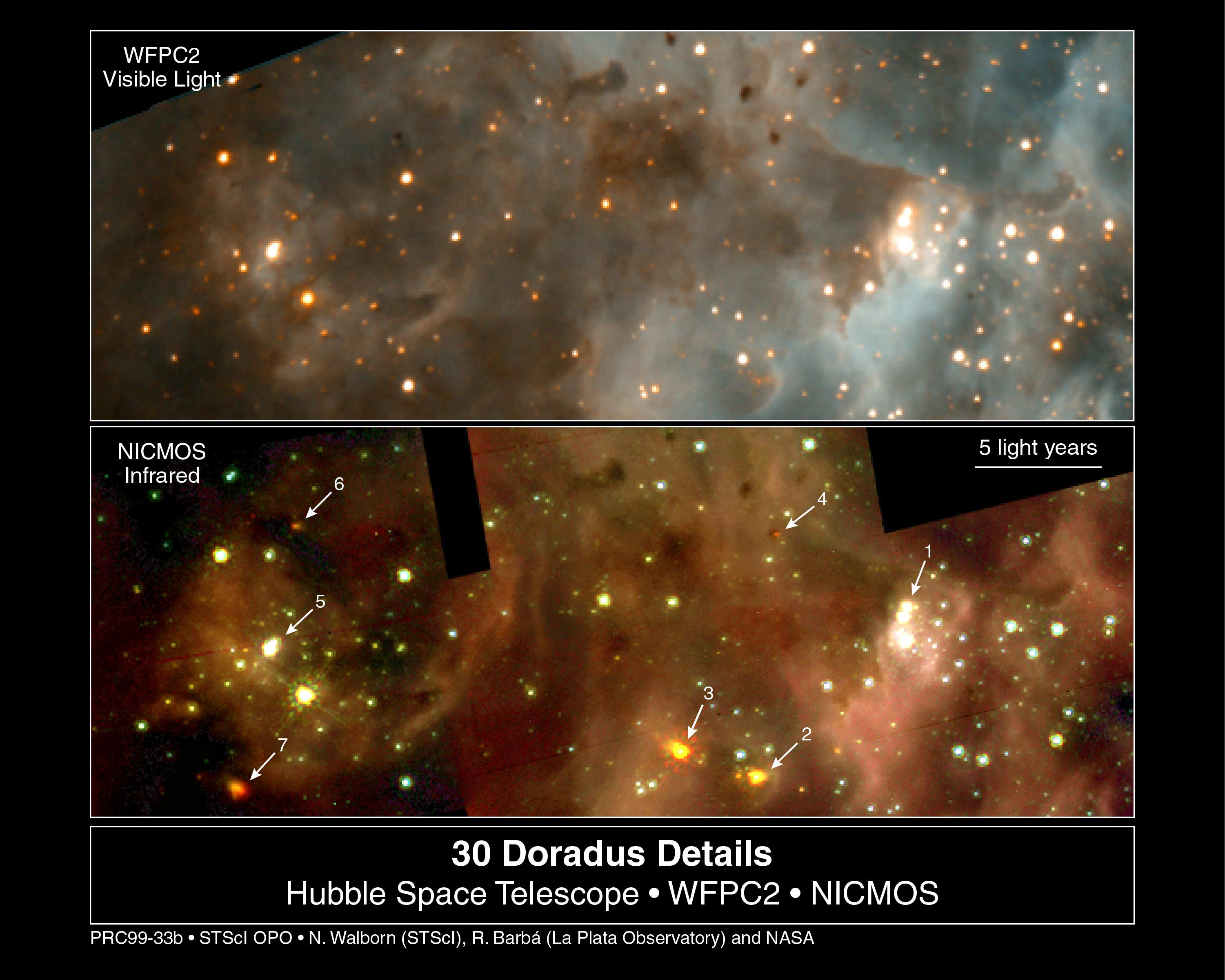 Credit:NASA/ESA/Nolan Walborn ( Space Telescope Science Institute, Baltimore, Md.) and Rodolfo Barba (La Plata Observatory, La Plata, Argentina), NASA/ESA/John Trauger (Jet Propulsion Laboratory, Pasadena, Calif.) and James Westphal (California Institute of Technology, Pasadena, Calif.)