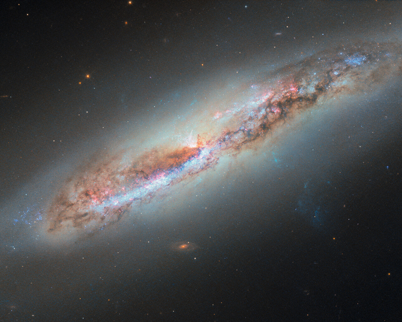 A sideways spiral galaxy shines in today’s ESA/Hubble Picture of the Week. Located about 60 million light-years away in the constellation Virgo (The Maiden), NGC 4388 is a resident of the Virgo galaxy cluster. The Virgo cluster contains more than a thousand galaxies and is the nearest large galaxy cluster to the Milky Way.